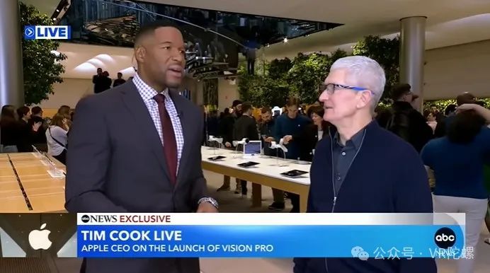 库克在Vision Pro发售的当天上午还接受了《早安美国》节目的简短采访,进一步解释了他认为Vision Pro将产生的影响。库克表示:“iPhone让我们进入了移动计算时代,Mac让我们进入了个人计算时代,(而Vision Pro)这是第一台空间计算设备。人们将以不同的方式与之互动。”